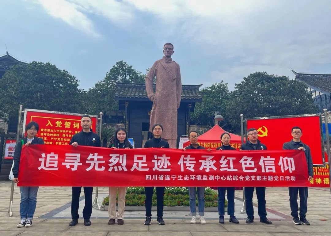 为追寻先烈足迹,继承先烈遗志,进一步发挥党支部战斗堡垒作用,近日,四川省遂宁生态环境监测中心站综合党支部前往杨闇公同志旧居开展“追寻先烈足迹 传承红色信仰”主题党日活动。
