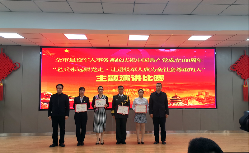 此次主题演讲比赛,是遂宁市退役军人事务局庆祝建党100周年系列活动和贯彻落实退役军人事务厅开展“永远跟党走”系列庆祝活动的重要组成部分。遂宁市退役军人事务局广泛发动、积极宣传,充分展示了全市广大退役军人一心向党、奋发有为的精神风貌,努力营造关心、关爱、尊崇军人的良好社会氛围。