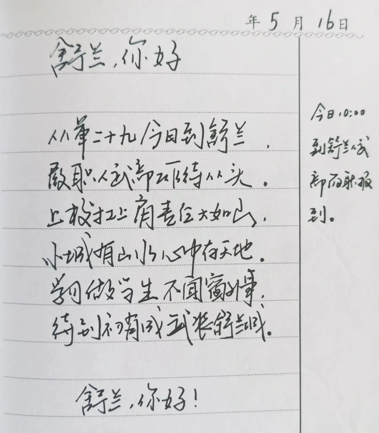 他便在日记本上写下一首诗