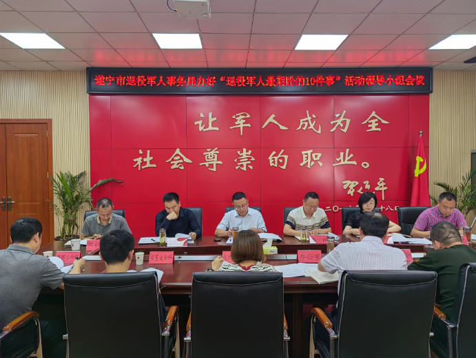 6月5日,遂宁市召开办好“退役军人最期盼的10件事”活动领导小组会议,会议听取了“退役军人最期盼的10件事”活动领导小组办公室及“四大活动”承担机构工作开展情况汇报,并对下步办好“退役军人最期盼的10件事”活动进行了安排部署。市退役军人事务局党组书记、局长唐思伦出席会议并讲话。