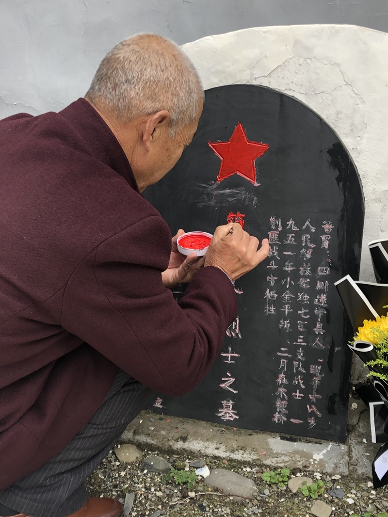小金县达维烈士陵园内,72岁的简忠金老人用颤抖的手小心翼翼地为一座烈士的墓碑描红。墓碑的主人名叫简正文,1951年在小金县对敌作战中牺牲,年仅19岁。这是72年来他的亲属第一次来墓前祭扫,也是遂宁市开展烈士寻亲工作的一个缩影。