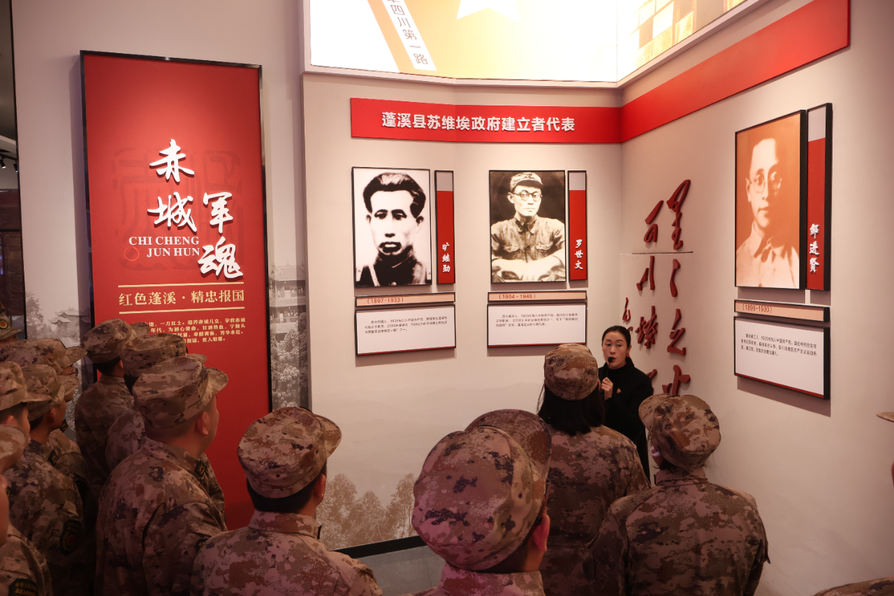 “历史的一页虽已翻过,但英雄的功勋光耀千秋。沿着革命先辈的足迹,在新时代奋楫笃行,我们更深刻地认识到什么是信仰坚定、对党忠诚,顾全大局、不计得失。”在蒙蒙细雨中,全体人员来到蓬溪县牛角沟起义遗址。伴随着讲解员的讲述,大家在纪念馆内凝神静听,一幅幅照片、一件件文物映照着革命年代共产党人的初心使命,先烈们坚定的红色信仰和大无畏的英雄气概,深深感染着现场每