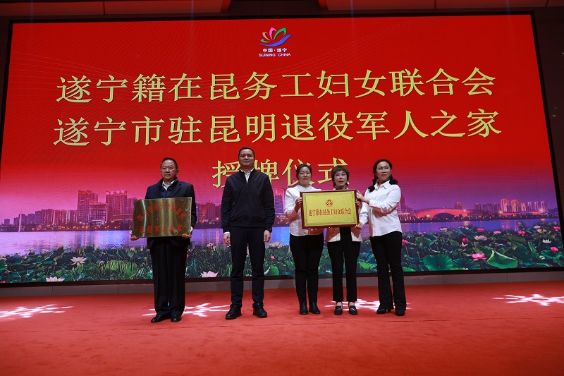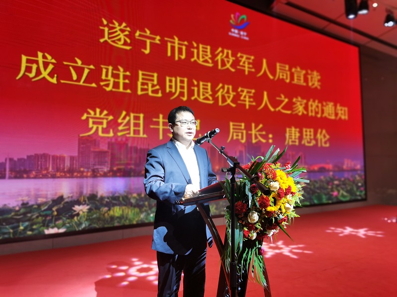 12月12日,遂宁市驻昆明退役军人之家等组织成立仪式在云南省昆明市举行。副市长张智勇,市政协副主席、市工商联主席曹驰宇出席,市退役军人局党组书记、局长唐思伦,党组成员、市退役军人服务中心主任舒天忠等领导参加成立仪式。