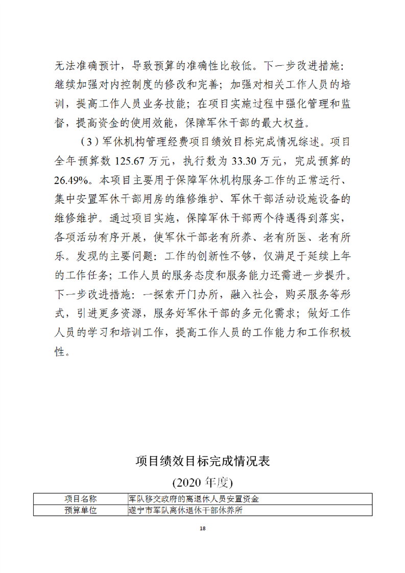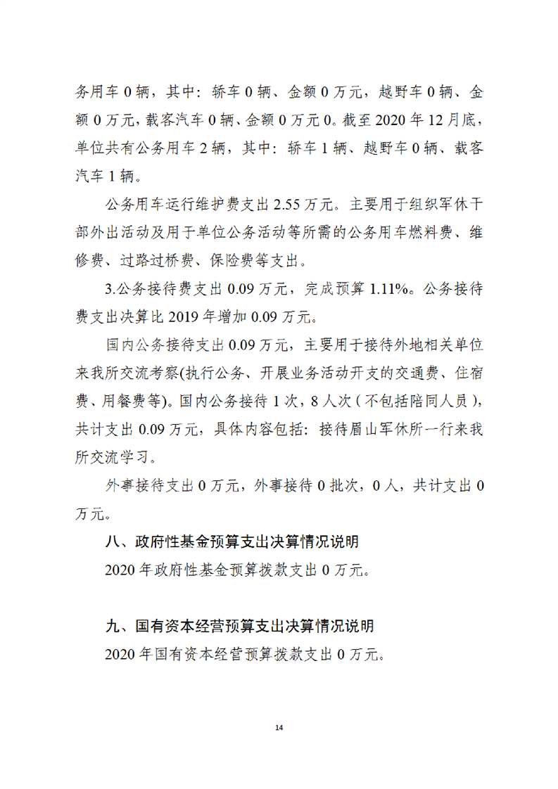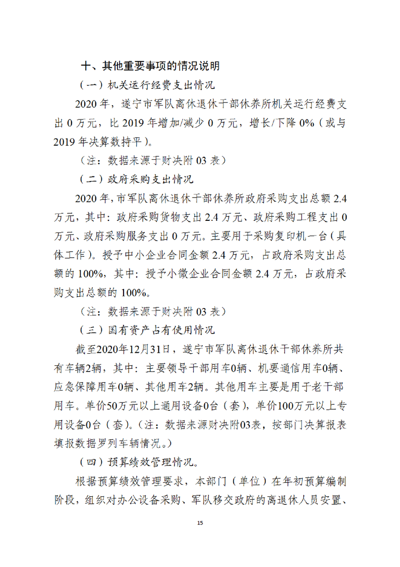 2020年度遂宁市军队离休退休干部休养所部门决算