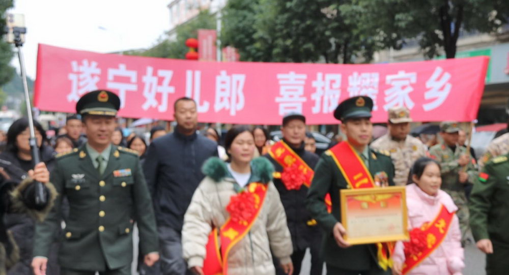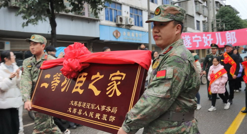 “军营建功勋,家乡传美名”