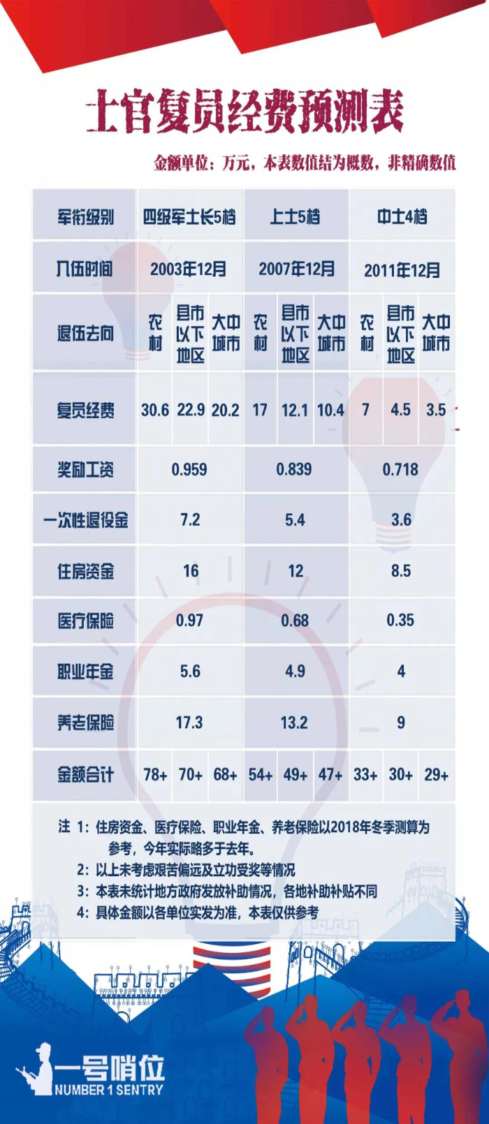 2、一次性退役金:按照每服役满1年4500元的标准逐年累加。(立功有增发)