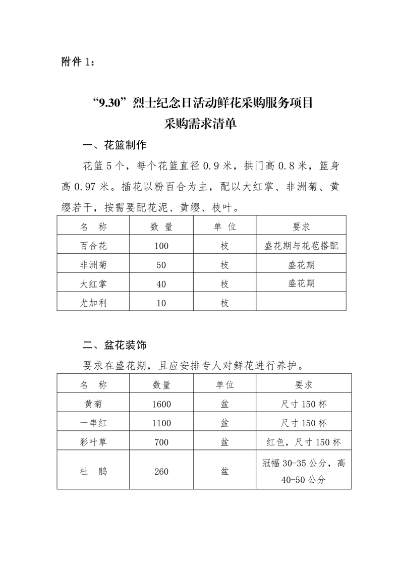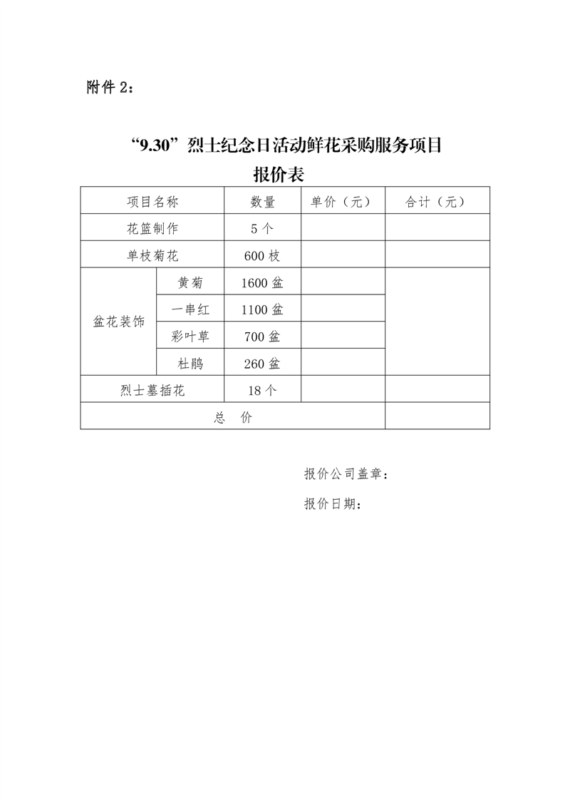 “9.30”烈士纪念日活动鲜花采购服务项目的邀请公告