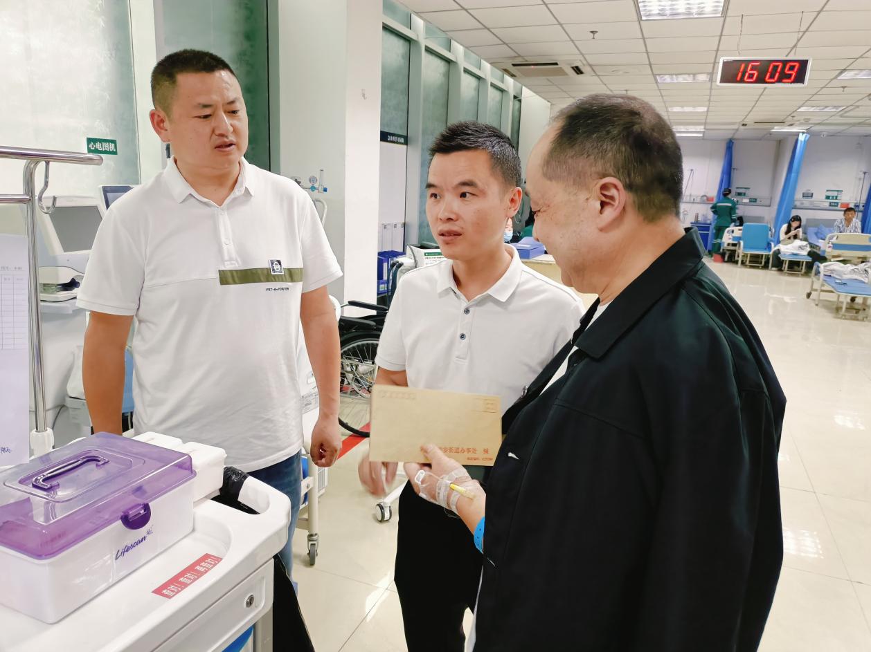 在病房中,王主任向老人家属仔细询问病情与治疗情况,叮嘱老人安心养病,有任何困难都可向街道和社区反映。他饱含深情地说道:“刘国银老人在抗美援朝战场上英勇无畏,为保家卫国作出了不可磨灭的贡献,是当之无愧的民族英雄,党和政府永远不会忘记您的功绩!”清家堰社区兰全书记也向老人及其家属亲切交谈,详细了解他们在生活上的需求,承诺社区会全力做好服务保障工作,及时解决生活中的实际困难。