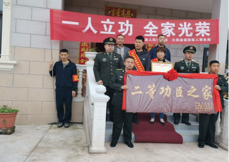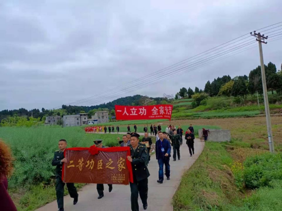 4月2日上午,大英县委常委、县人民武装部政治委员孙爱清,县人民武装部部长党健,县退役军人局副局长钱礼华,卓筒井镇党委书记吴坤杜等一行前往卓筒井镇慰问现役军人罗建平及父母,并送上二等功喜报、二等功臣之家牌匾和慰问金,把党和政府的关怀送到军属家中。