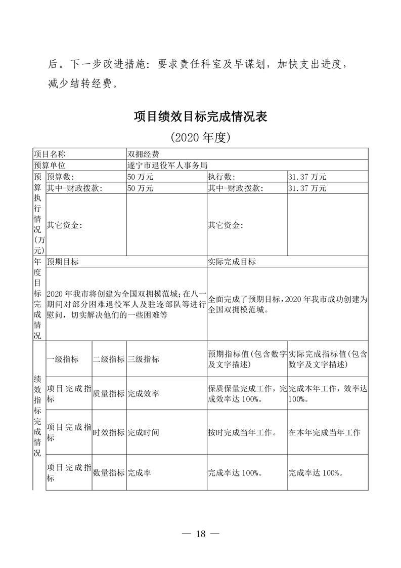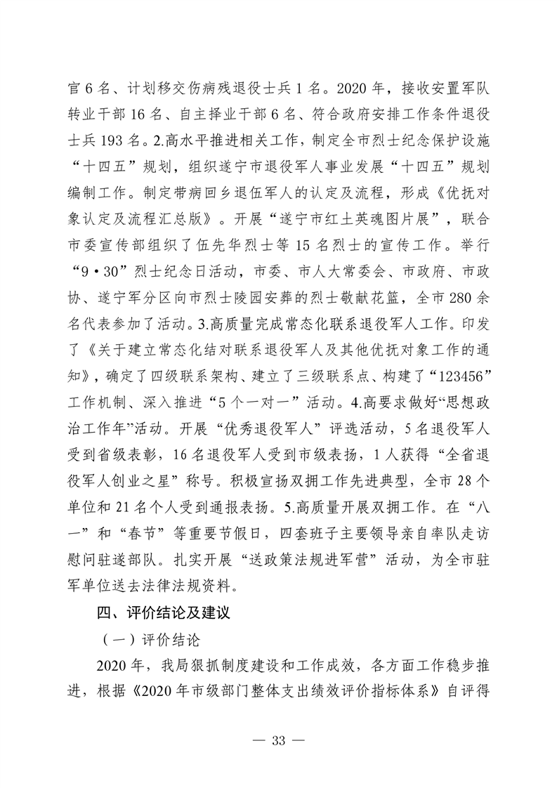 2020年度四川省遂宁市退役军人事务局汇总部门决算