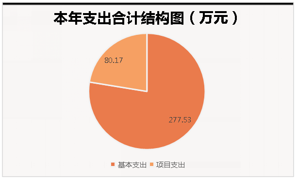 2020年本年支出合计357.70万元,其中:基本支出277.53万元,占77.59%;项目支出80.17万元,占22.41%;
