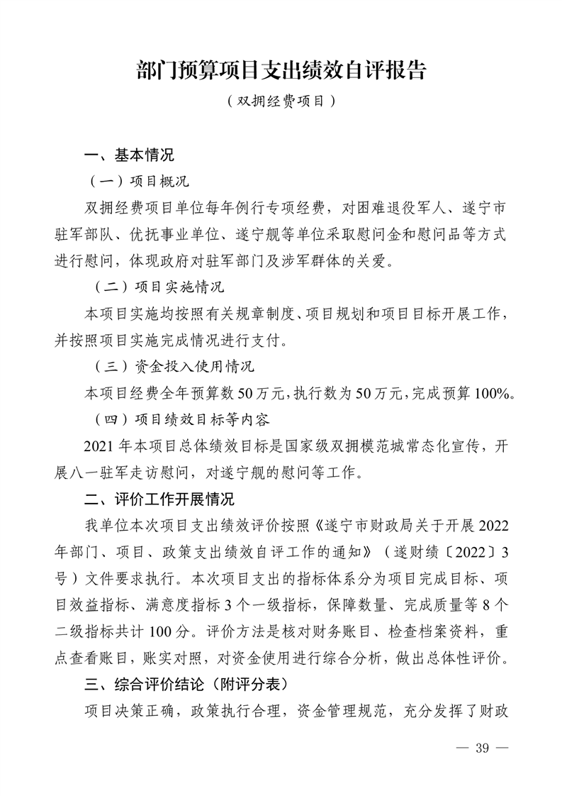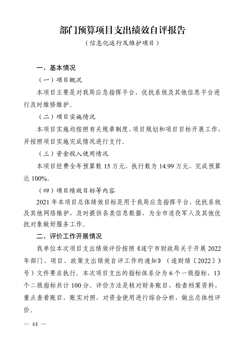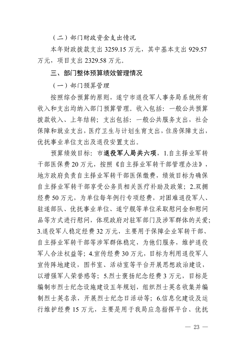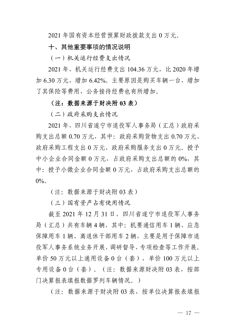 2021年度四川省遂宁市退役军人事 务局(汇总)单位决算