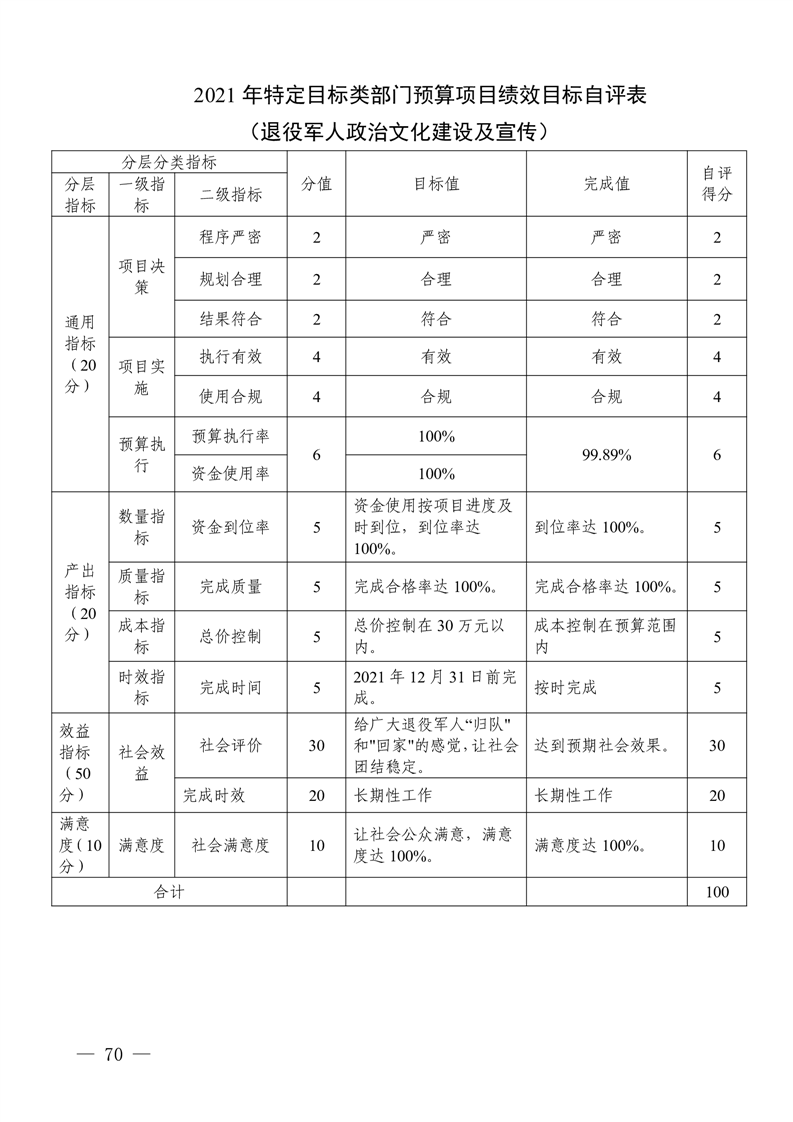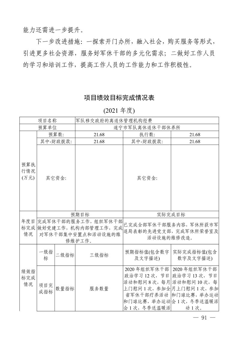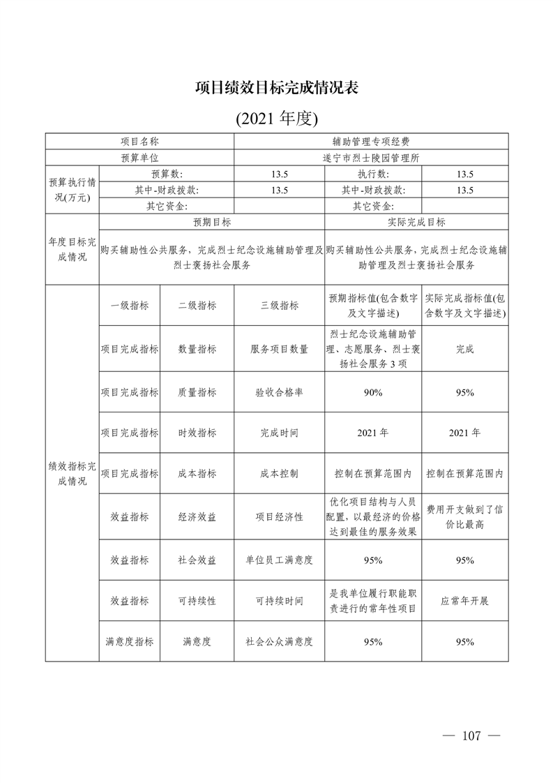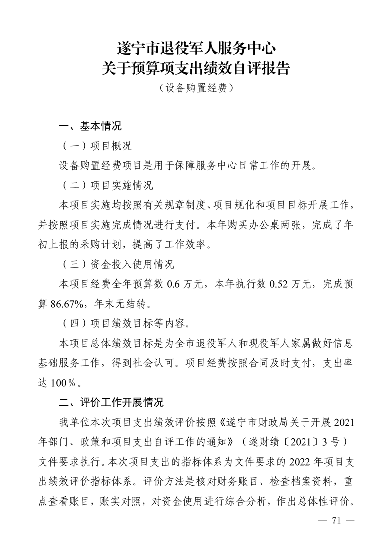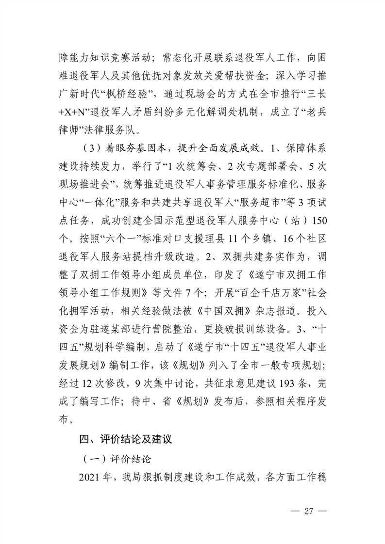 2021年度四川省遂宁市退役军人事 务局(汇总)单位决算