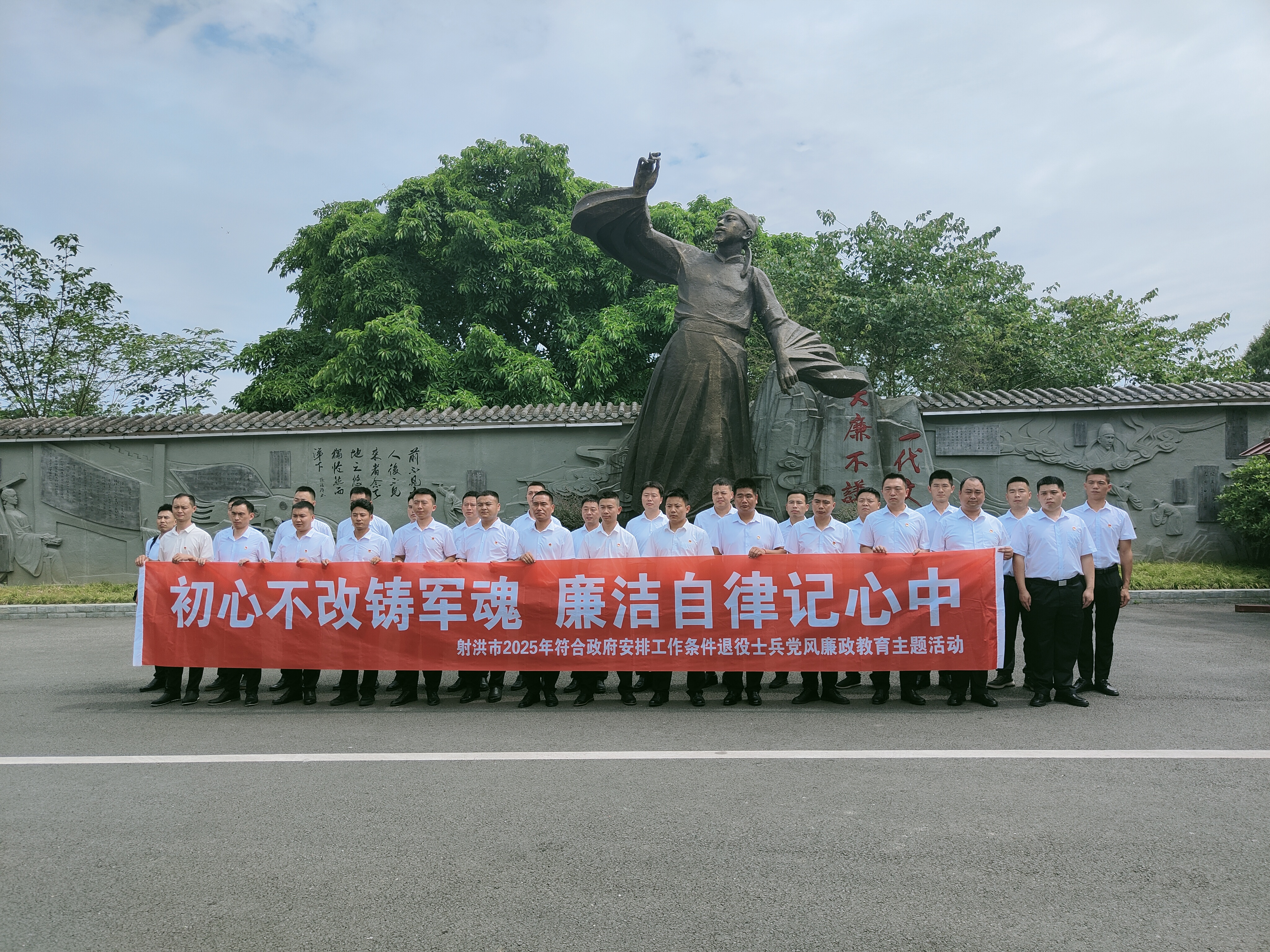 为深入贯彻中央八项规定及其实施细则精神,进一步强化由政府安排工作退役军士廉洁自律意识,帮助其尽快适应新岗位、新要求。6月20日,射洪市退役军人事务局组织2025年由政府安排工作退役军士开展党风廉政教育,通过理论授课与现场教学相结合的方式,为其上好回到地方的“廉政第一课”。
