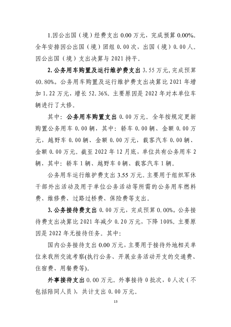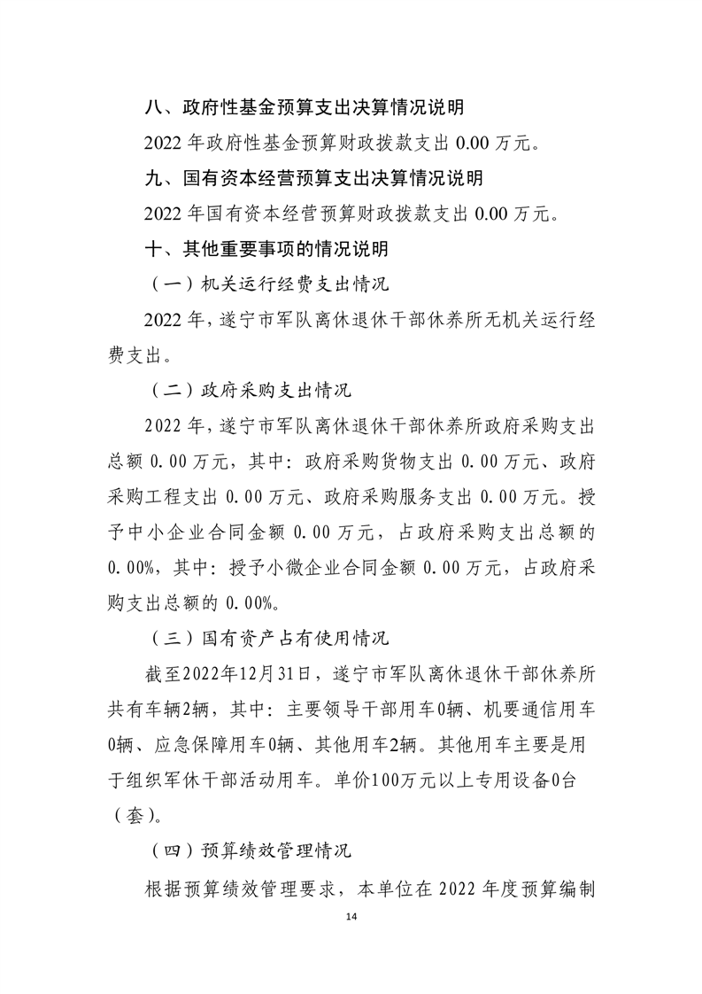 2022年度遂宁市军队离休退休干部休养所决算公开