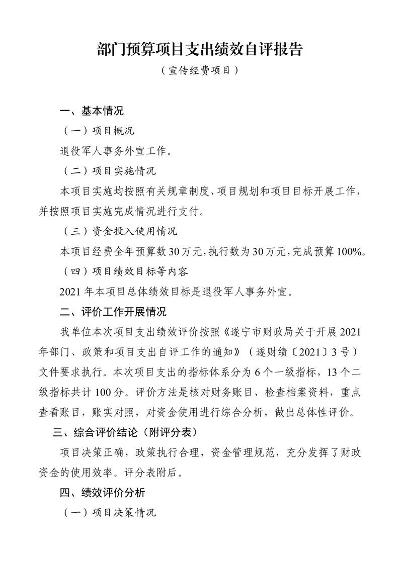 2021年度四川省遂宁市退役军人事务局(本级)单位决算