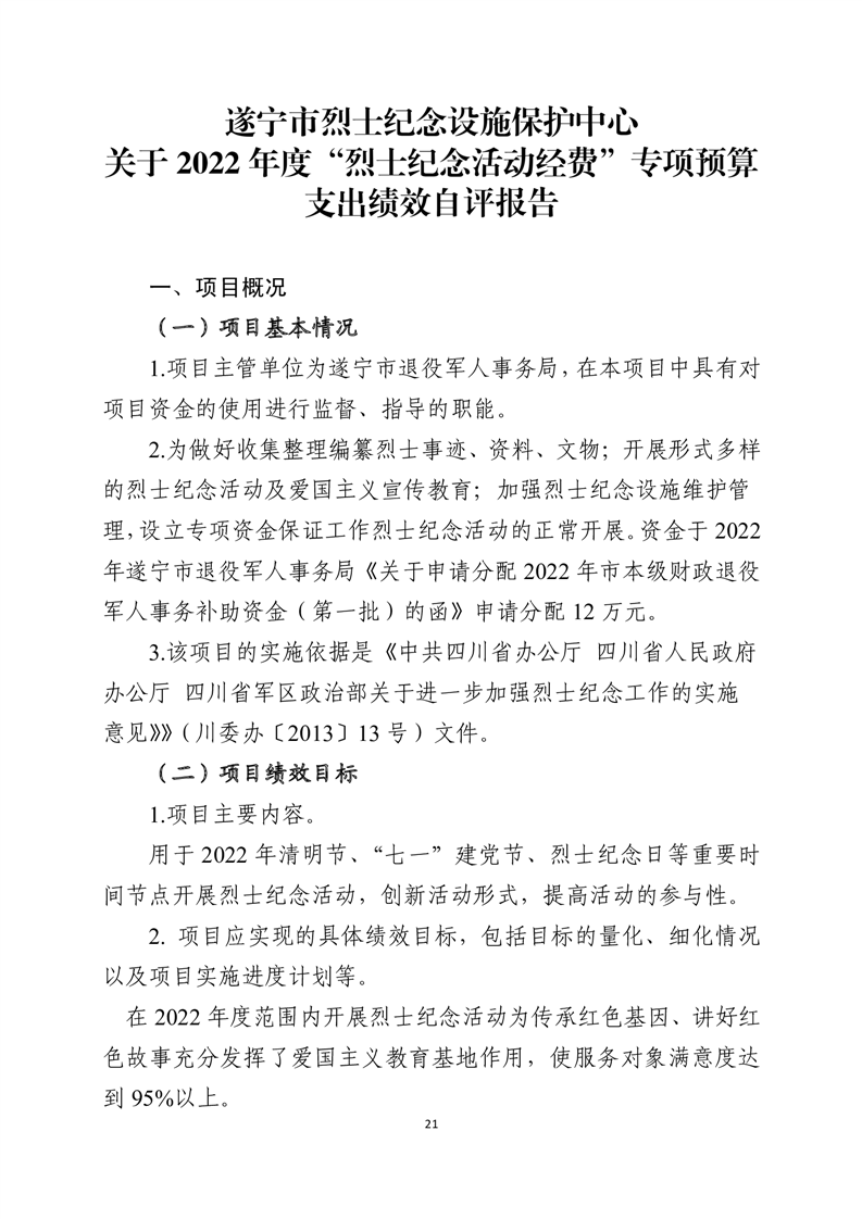 2022年遂宁市烈士纪念设施保护中心(遂宁市烈士陵园管理所)决算编制说明