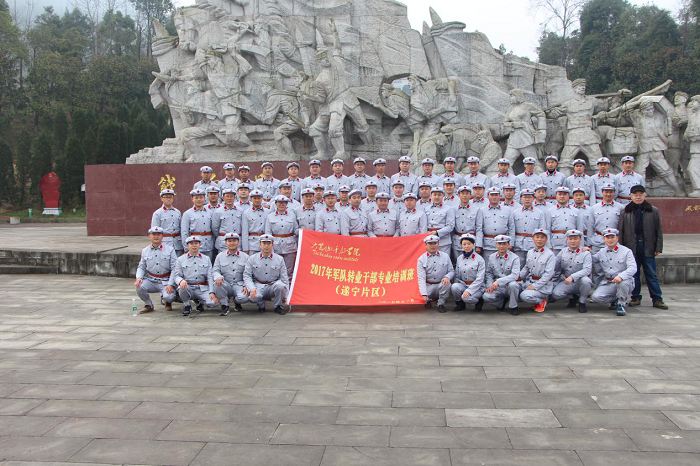 2017年12月26日—29日,由遂宁市转业军官培训中心举办的2017年军队转业干部专业培训班(遂宁片区)到川陕革命老区巴中开展了为期4天的学习。期间参观了川陕革命根据地博物馆、将帅碑林、川陕省委党校旧址纪念馆等红色教育基地,开展了学唱红歌、重走红军路、吃红军饭等系列活动。学员们纷纷表示此次学习非常有意义,通过重温红军情,在缅怀革命先烈的同时也让大家更加珍惜现在的幸福生活,更要将革命的激情与斗志带入新的岗位中书写新时代的精彩人生。