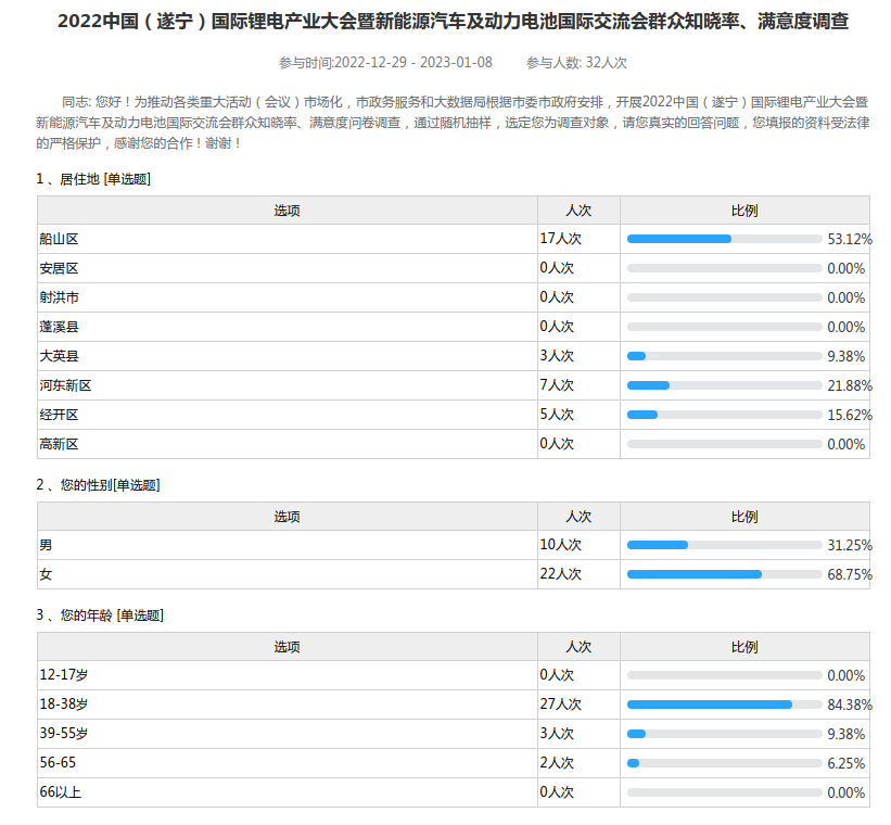 2022中国(遂宁)国际锂电产业大会暨新能源汽车及动力电池国际交流会群众知晓率、满意度调查