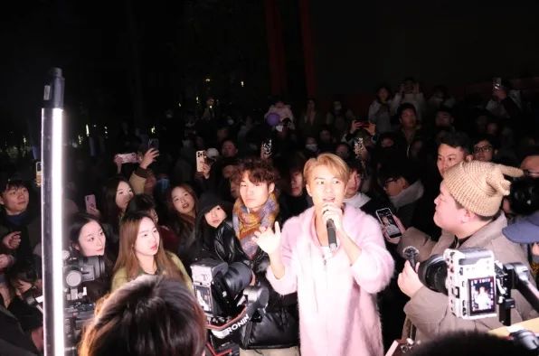 直播开始,遂宁的年轻朋友们唱响吴克群代表作《为你写诗》,吴克群随即接过话筒与大家对唱,冬夜寒冷,但现场兴奋热烈。