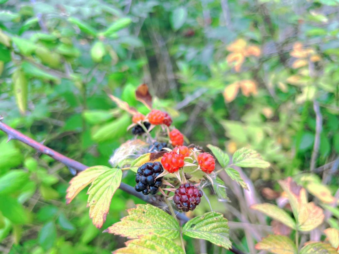 石壁虽毁,青山依在。沿山路前行,这里被绿意包裹,岩石青苔间细细密密的小白花、覆满青苔的石块和朽木、蓝绿得像薄荷味似的溪流、野花野果伸手可摘,林中只剩虫鸣鸟叫。用绿野仙踪形容这里,再恰当不过了。