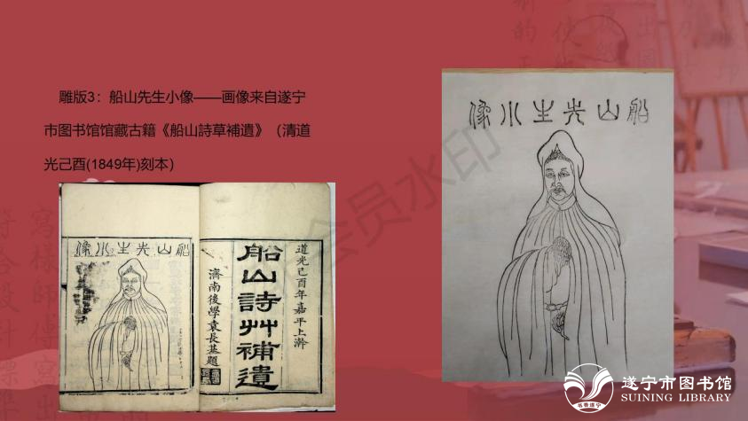 活用馆藏古籍《船山诗草补遗》文献资源,设计“船山先生小像”梨木雕版