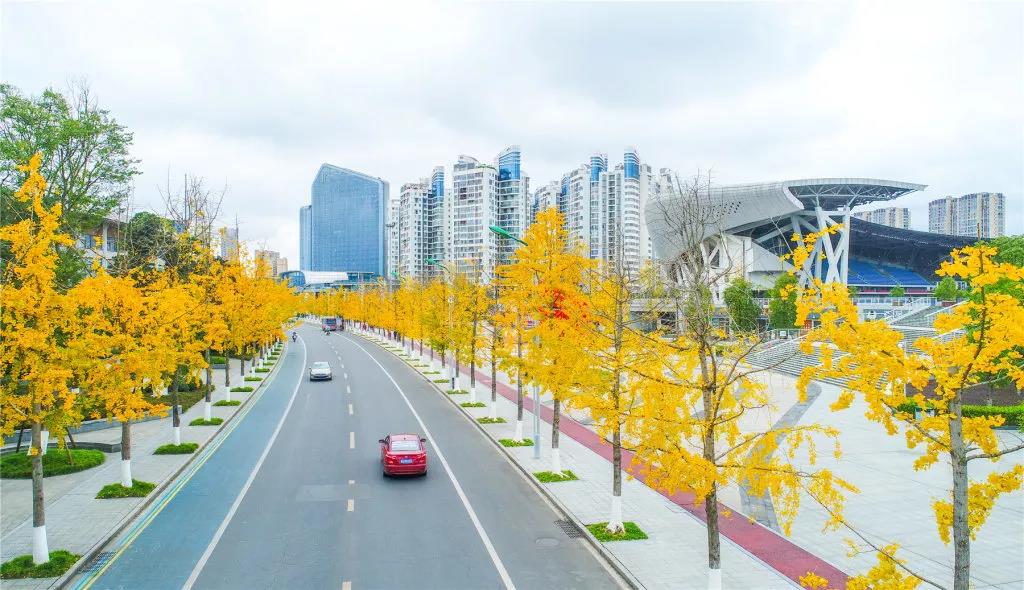 被评为四川省最美街道之一的河东新区五彩缤纷路银杏叶黄了,入冬后,银杏树叶渐黄,金黄色的银杏无疑成为遂宁一道亮丽风景。满树、满地都是金灿灿的银杏叶,不仅点缀了道路,更吸引不少市民前来休闲玩耍。