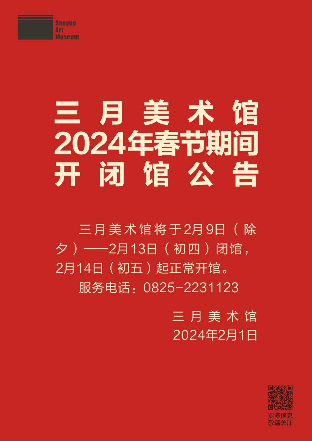 三月美术馆2024年春节期间开闭馆公告