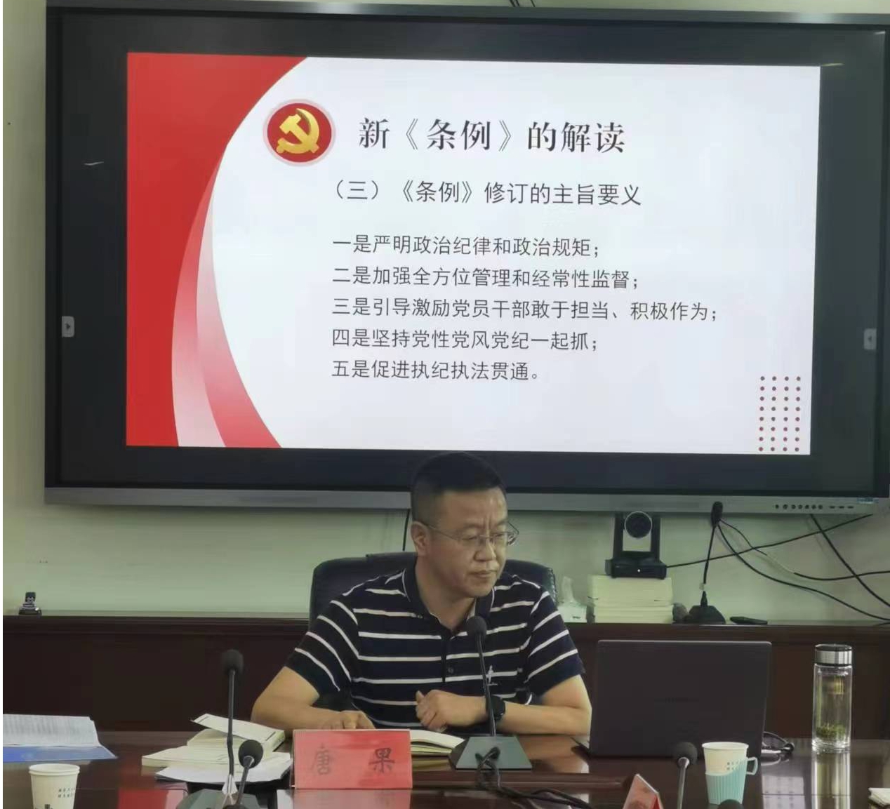 唐果书记从深入认识学习贯彻党纪法规的重要性;准确把握党纪法规的核心内容和精神实质;自觉践行党纪法规,筑牢纪律防线;加强组织领导,推动学习贯彻党纪法规走深走实四个方面进行了深入解读。让参会党员干部对党的纪律要求有了更清晰、更深刻地认识。