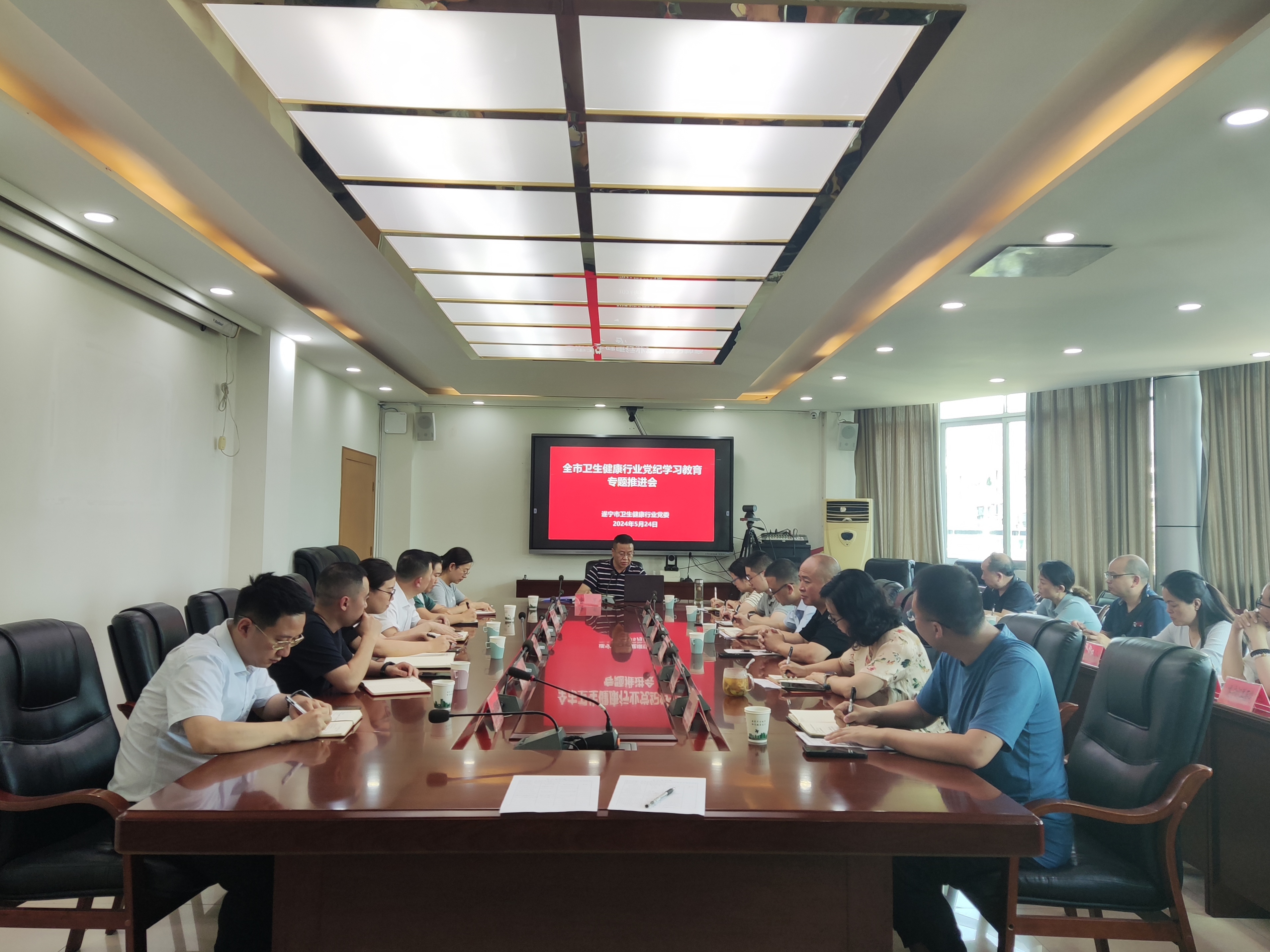 为深入学习贯彻党纪法规,筑牢党员干部纪律防线,加强党的纪律建设,推动卫生健康行业党委全面从严治党向纵深发展。5月24日下午,市卫生健康行业党委召开了党纪学习教育专题推进会。船山区卫生健康局、市直三园区社事局、市直公卫单位、部分民营医院分管领导和市卫生健康委机关党支部书记参加了会议。委机关党委书记唐果同志出席会议,并以“学习中国共产党纪律处分条例”为主题,为参会党员干部作了行业党课专题培训,讲授了一堂生动的党纪学习教育党课。