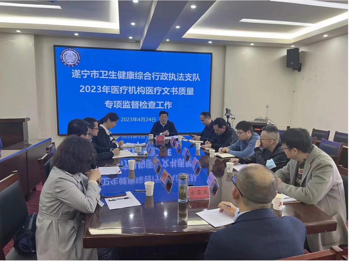 为进一步加强医疗行业监管,规范医疗文书制作,提高医疗服务质量,维护广大人民群众的健康权益。遂宁市卫生健康综合行政执法支队经过前期精心准备,于2023年4月24日全面启动市城区二级以上医疗机构及部分专科医院医疗文书质量专项检查工作。