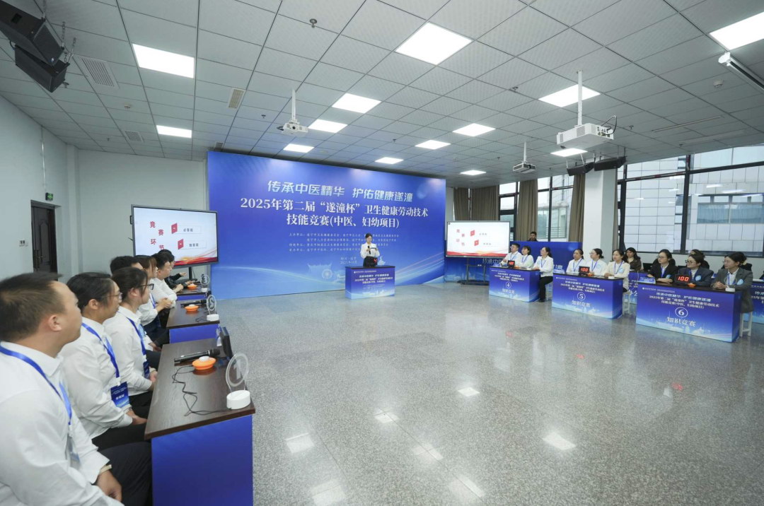 此次比赛以“传承中医精华护佑健康遂潼”为主题,由遂宁市卫生健康委员会、遂宁市总工会、重庆市潼南区卫生健康委员会等6个部门联合主办,遂宁市中医院、遂宁市妇幼保健计划生育服务中心联合承办。旨在搭建“切磋技艺、交流技术、提升技能、快速成才”的平台,助力遂潼地区高素质技能人才队伍建设,更好地推进遂潼卫生健康事业高质量一体化发展。比赛邀请四川大学华西第二医院、重庆医科大学附属第二医院、成都中医药大学附属医院等专家担任评委。