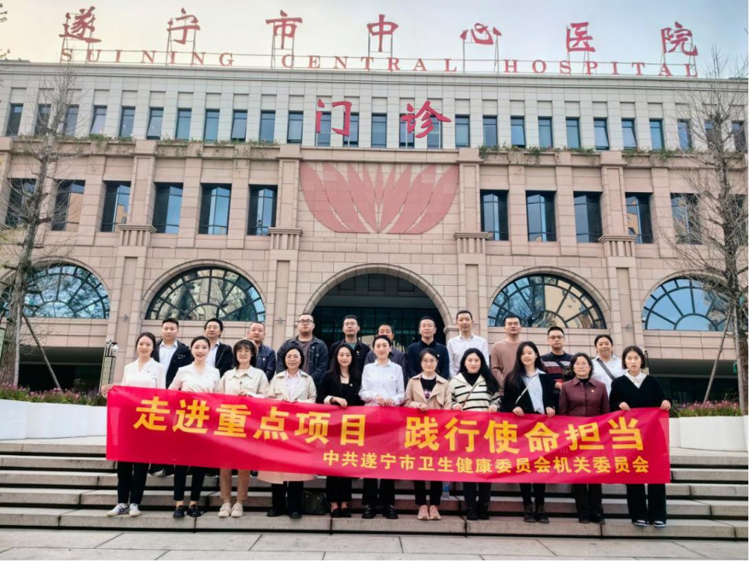 党员们先后参观了新迁建的遂宁市疾病预防控制中心和遂宁市中心医院健康服务产业基地等重点项目,大家认真听取介绍、实地了解我市卫生健康领域重大项目的建设情况、发展规模、后期规划等。