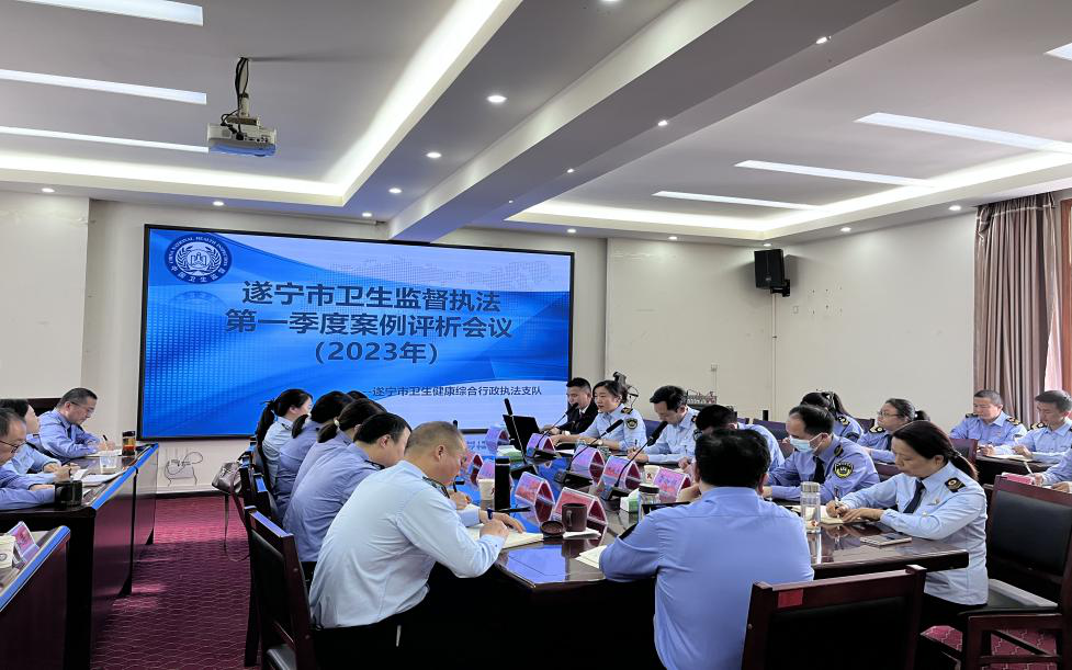 为规范全市卫生健康监督执法行为,提高监督执法人员办案水平,4月14日下午,遂宁市卫生健康综合行政执法支队召开2023年第一季度案例评析会议,会议由支队派驻船山区大队大队长曾洁主持,支队全体监督员、各县(市、区)大队代表参加本次会议。