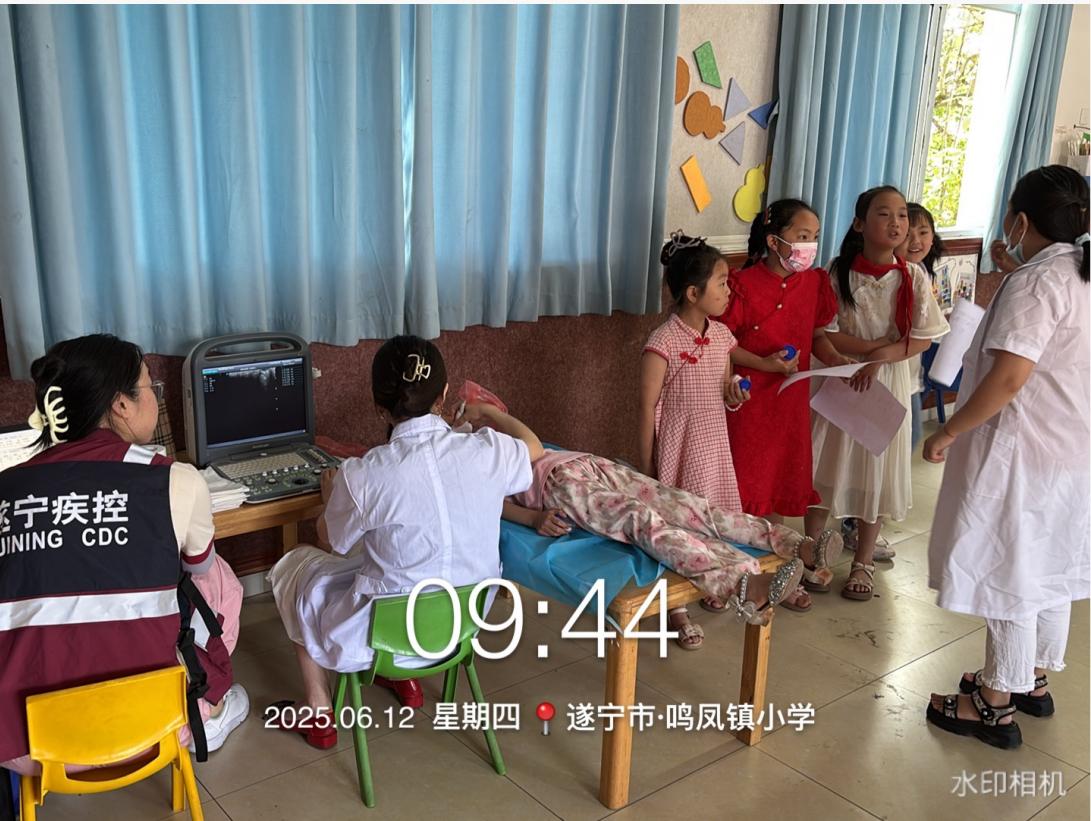 市、县两级疾控中心与乡镇卫生院形成工作合力,组建专业队伍,深入安居区、射洪市、蓬溪县的15所学校,针对8-10岁儿童开展甲状腺B超、尿碘、家中食用盐碘专项检测工作。