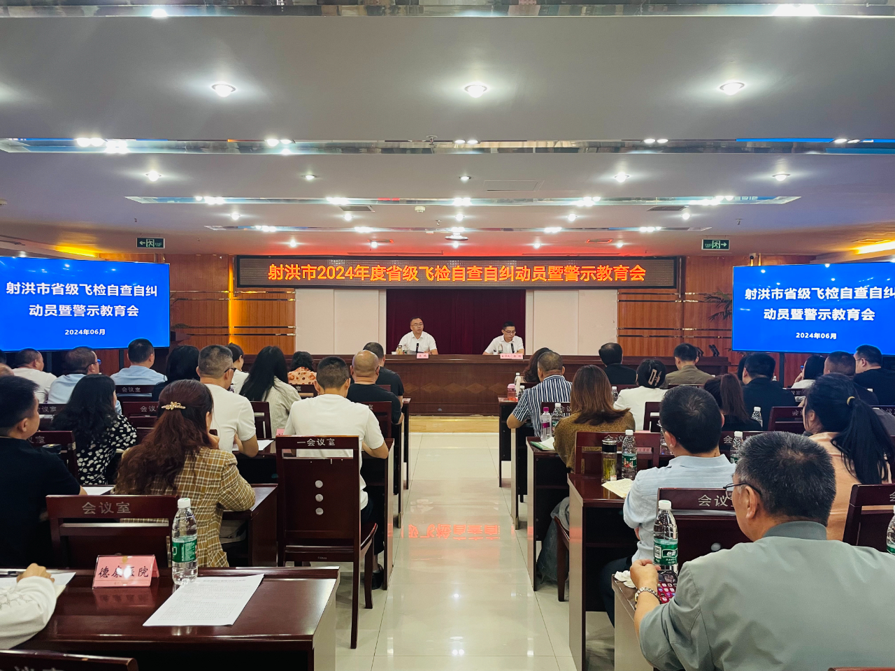 6月4日下午,射洪市医保局召开2024年度省级飞检自查自纠动员暨警示教育会议。