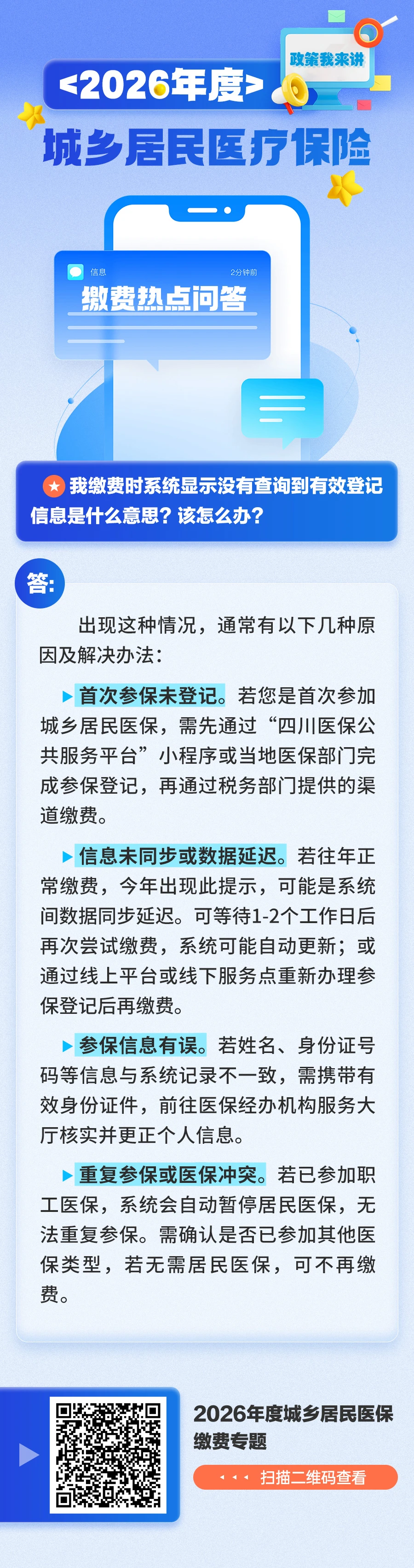 2026年度城乡居民医保缴费热点问答:缴费时提示没有查到有效登记信息怎么办