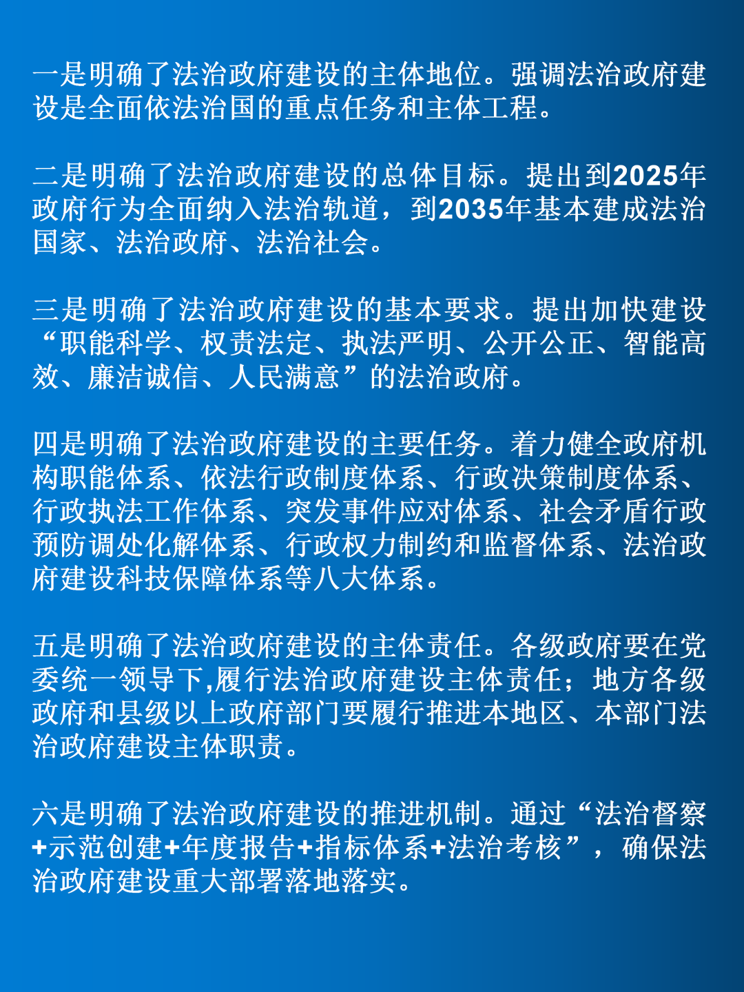 “党中央、国务院高度重视法治政府建设,党的十八大、十八届三中、四中全会,党的十九大、十九届四中全会,党的二十大、二十届三中全会,均对法治政府建设作出部署。每年的国务院政府工作报告都强调要依法行政,法治成为政府工作报告的高频词。”李丹深入学习研究了习近平总书记对法治政府建设的重要论述和党中央、国务院决策部署后,初步归纳为“六个明确”。