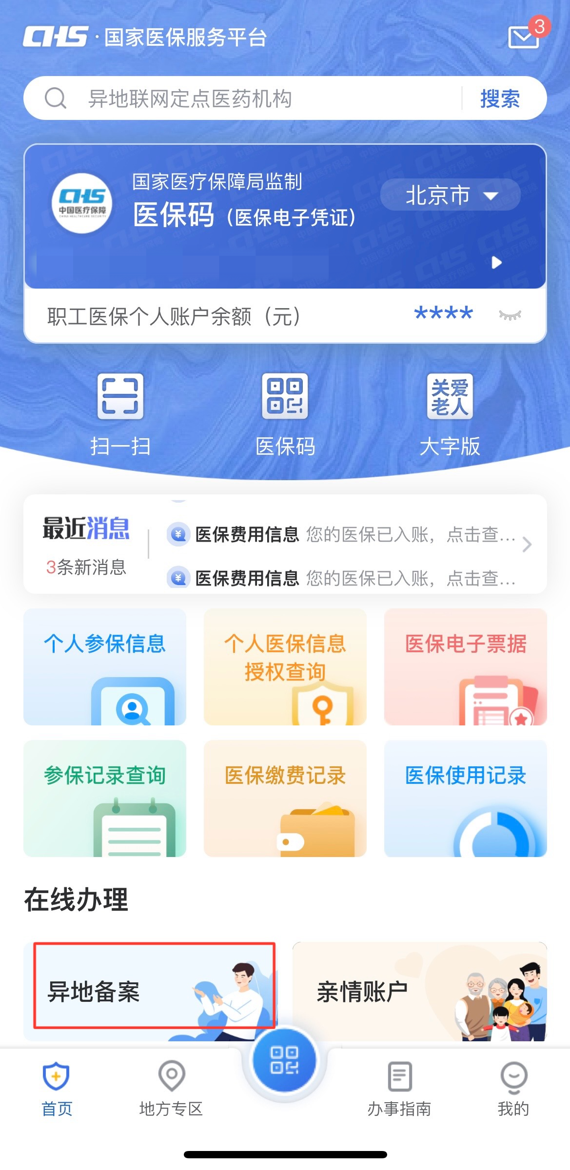 第二步:点击【异地备案】,再点击【异地联网定点医药机构】。