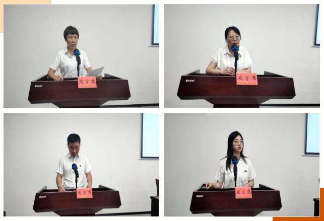 会上,船山区毛媛、安居区刘艳、大英县付平、射洪市赵枝楠4名学员代表紧扣本次培训主题,就学习收获体会进行了交流发言。