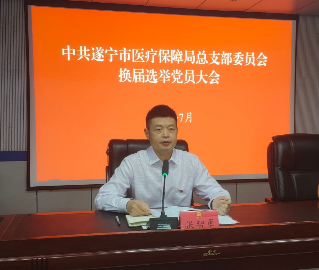 7月22日,市医保局召开局党总支换届选举党员大会。市医保局党组书记、局长张智勇出席会议并讲话。市医保局党组成员、副局长、党总支书记周筠主持会议。
