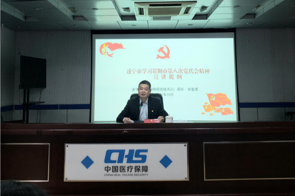 近日,市医保局召开党组理论学习中心组学习(扩大)会议,市委宣讲团第十二分团成员、市医保局党组书记、局长张智勇宣讲市第八次党代会精神,市医保局全体干部职工参加会议。