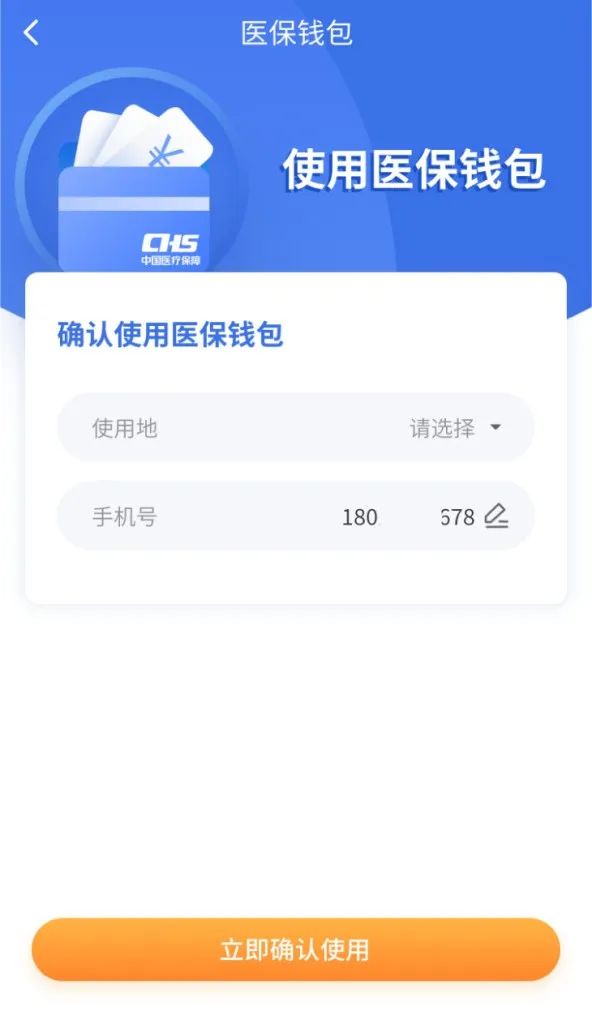 选择“使用地”,填写绑定手机号,点击“立即确认使用”