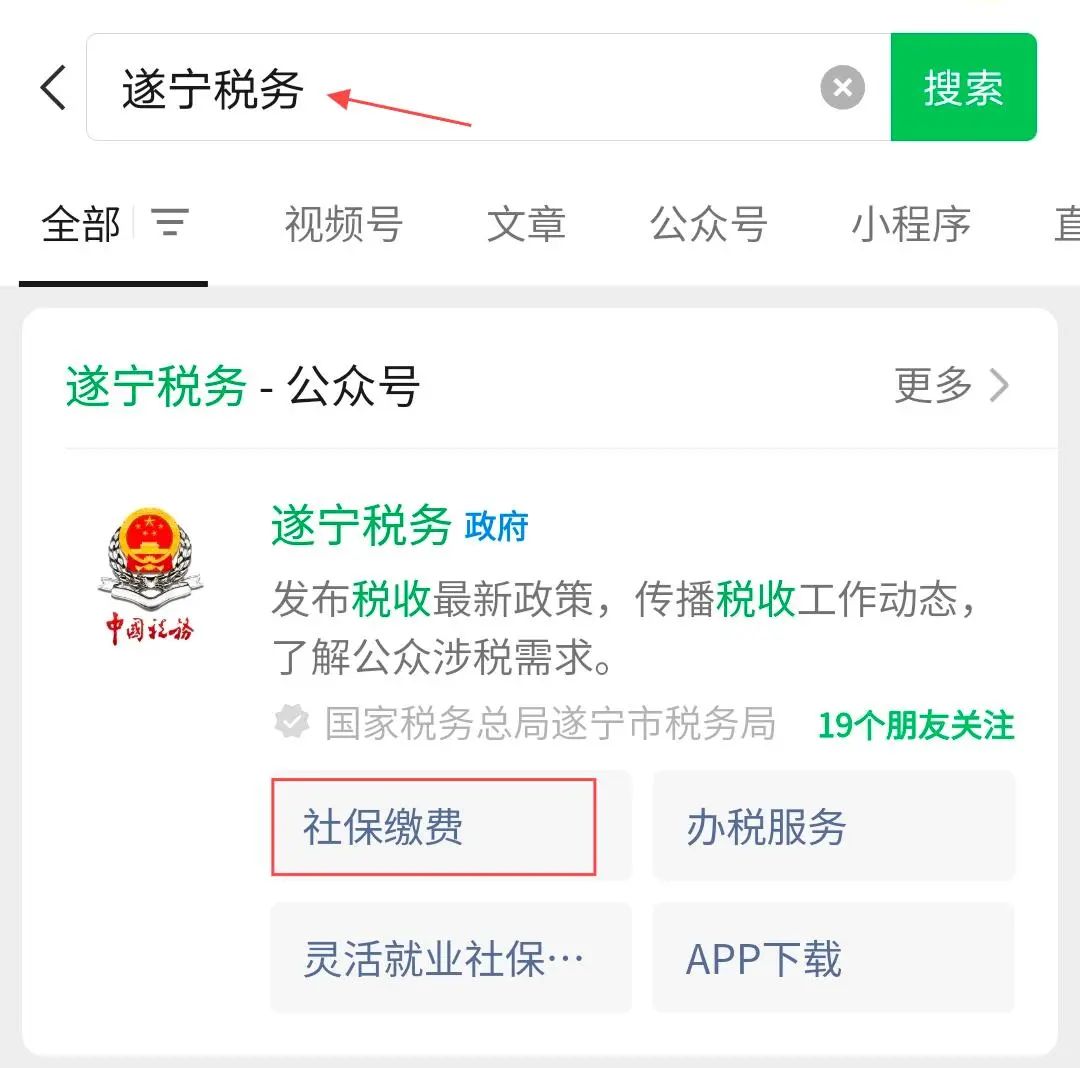 途径2 微信搜索“遂宁税务”公众号—社保缴费