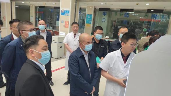 考察组在六盘水市首钢水钢医院现场观摩和体验医院移动线上支付和综合服务终端应用