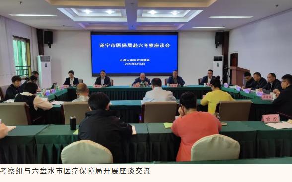 考察组就DRG付费改革、医保信息化建设、医保窗口标准化等工作与六盘水市医保局进行了座谈交流和深入探讨,并实地考察六盘水市首钢水钢医院、钟山区政务服务大厅、钟山区黄土坡街道服务中心,现场观摩和体验医院移动线上支付、综合服务终端应用、医保服务窗口统一化标准化打造及医保经办服务下沉等工作。赵全江表示,六盘水市医保局在推进医疗保障制度改革工作中理念新、措施实、办法多,多项工作成为全国试点示范,相关经验值得遂宁深入学习借鉴,一定把这些思路和经验带回去、转化好,不断提升遂宁医保信息化建设水平和医保经办规范化服务能力。六盘水市医保局党组书记蒋承礼对考察组一行表示热烈欢迎,并希望两地加强沟通交流,相互学习,相互促进,共同推进两地医疗保障事业高质量发展。