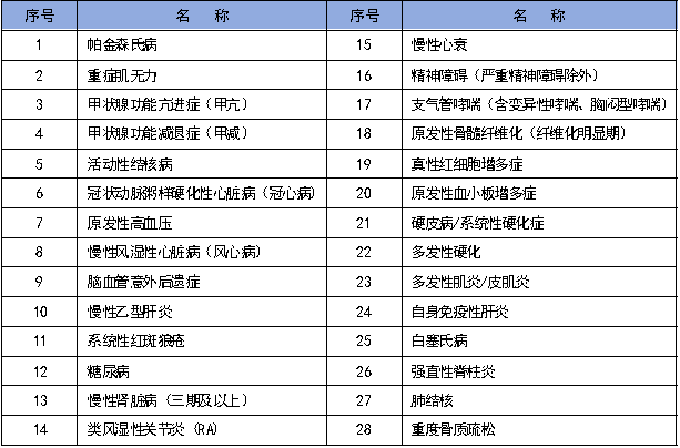 职工医保参保人可申请的重症特殊疾病病种共20种