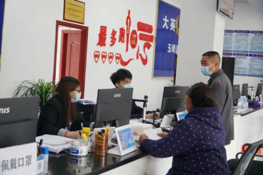大英县玉峰镇便民服务中心内,居民办理医保业务