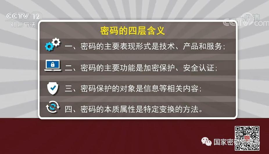 国家密码管理局新闻发言人李国海用两集的时间为大家进行解读,上集为《保护国家秘密的密码》,下集为《百姓身边的密码》。