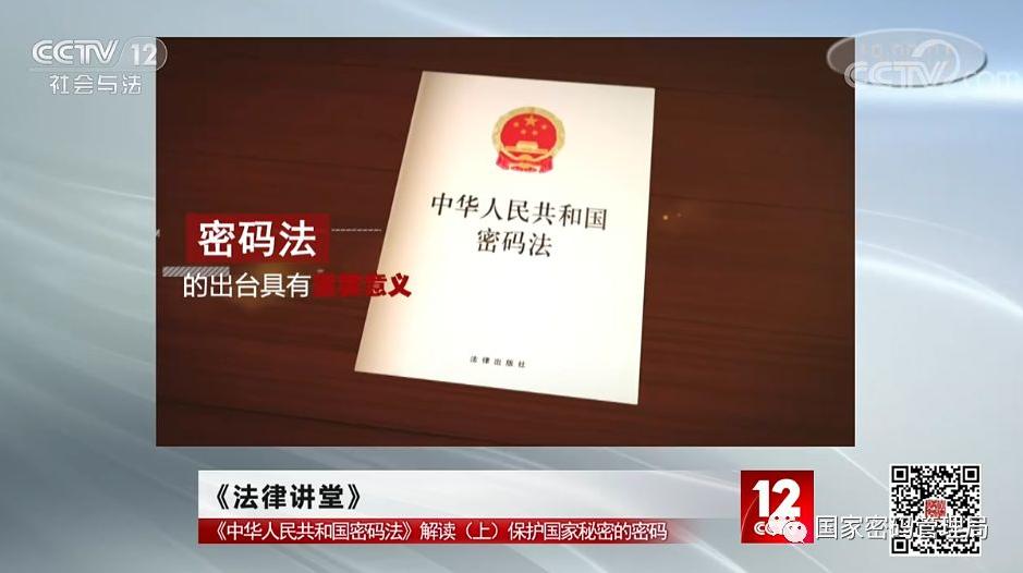 央视12套《法律讲堂》推出密码法专题节目,特邀国家密码管理局新闻发言人李国海为大家解读《中华人民共和国密码法》。